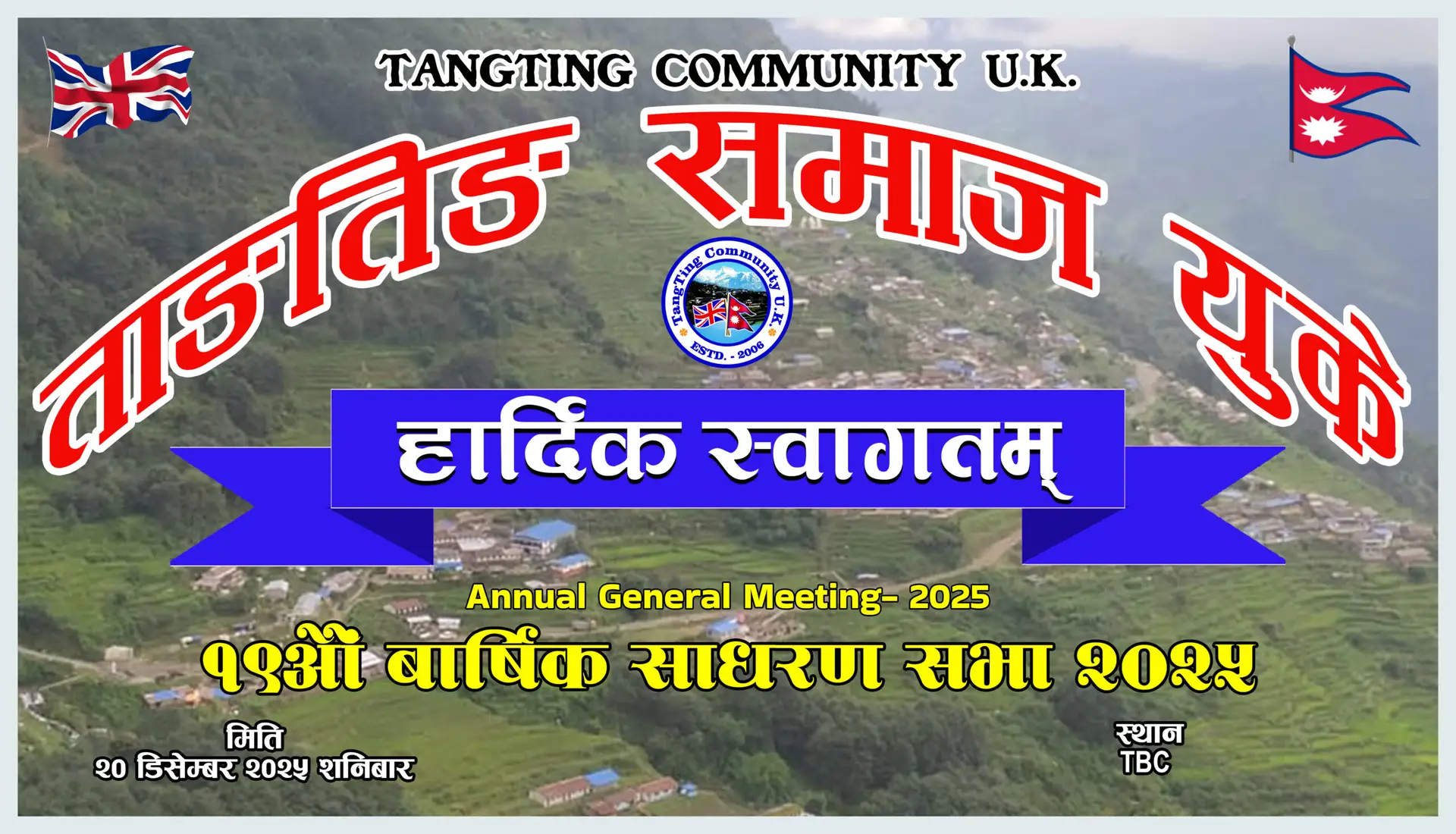 ब्र्याकनेल, लन्डन । बर्कसायर स्थित ब्र्याकनेलको विन्कफिल्ड पेरिस काउन्सिलको हलमा मिति जुलाई १९ तारिख २०२५ साल शनिबार ताङतिङ समाज युकेले २०२५ सालको बार्षिक भेटघाट तथा